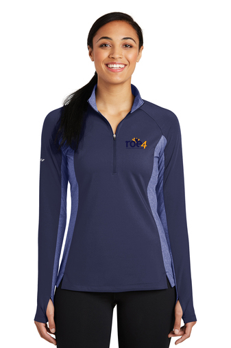 By mixing heather with a solid color and adding reflective hits, this moisture-wicking pullover has a technical look plus plenty of stretch for easy movement.